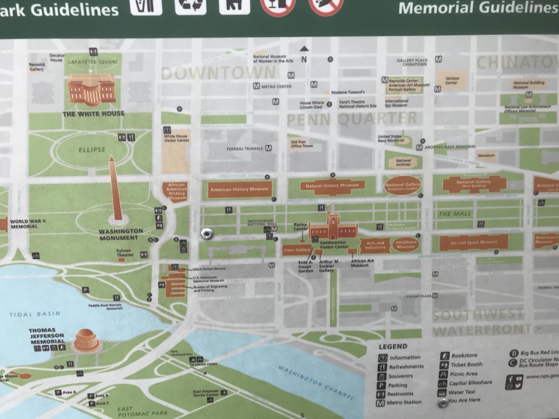 Mall map. Afro-Amer Museum next to Wash Monument. Farmers Mkt down at theMetro symbol