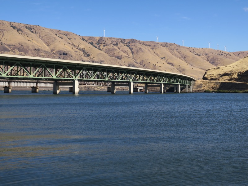 I-84 bridge, railroad bridge behind it, over the John Day River