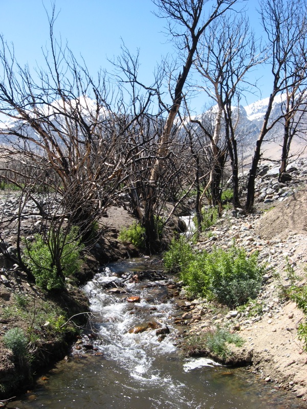 Owens Valley creek, owned by LA Water, post-fire