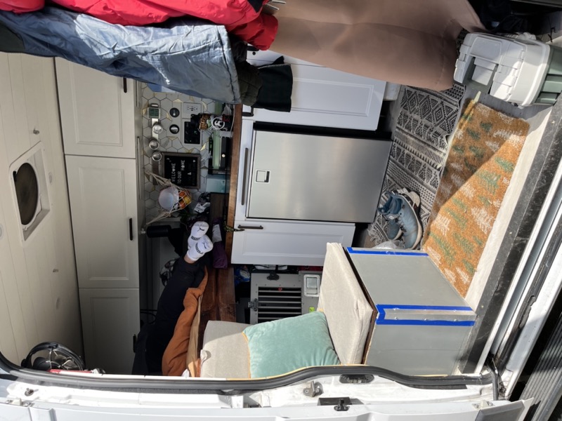 Interesting van! Raising the bed gives a lot of storage underneath