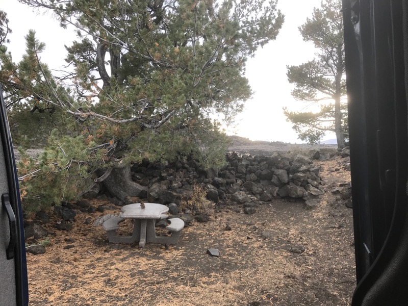 Eerie lava beds moonscape. Really cool to have a campground in such a surreal place