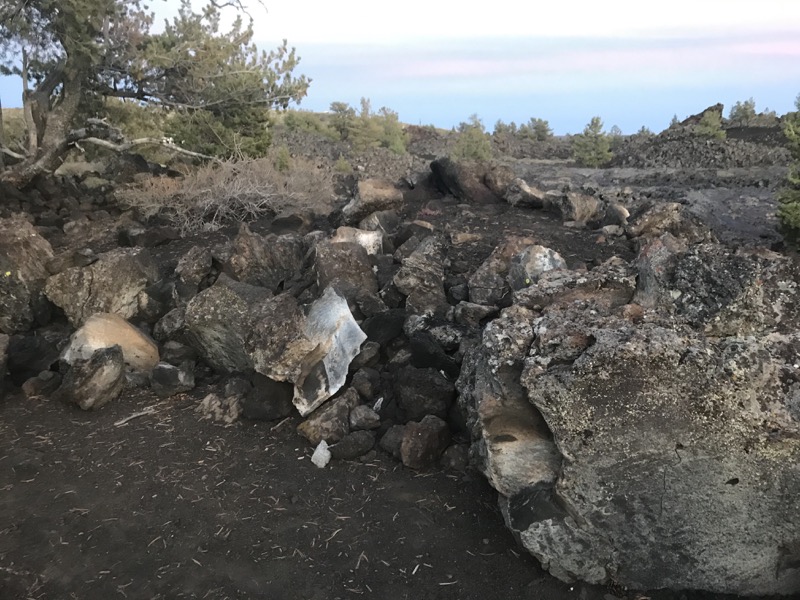 eerie lava beds moonscape. Really cool to have a campground in such a surreal place
