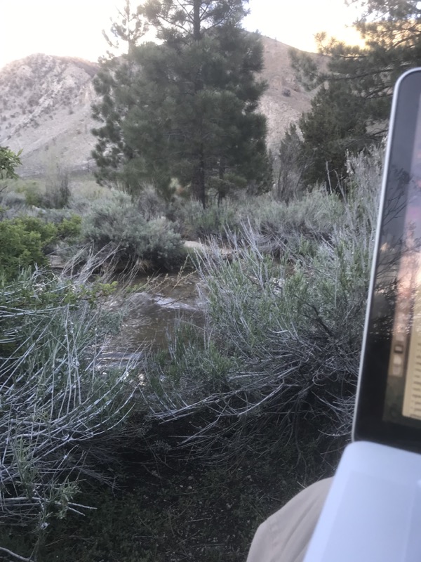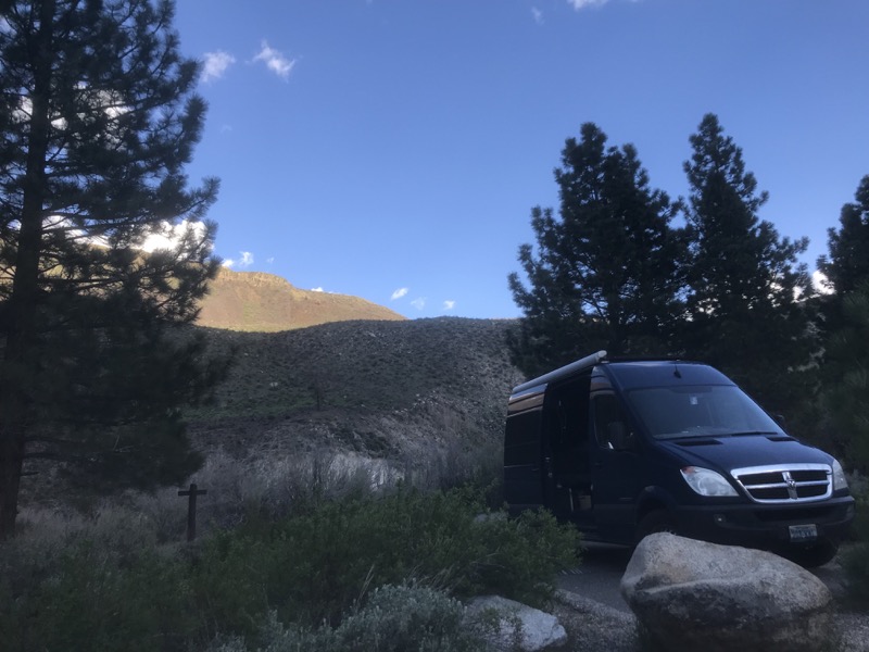 Today there is substantial little creek rushing past Sites 2 and 3. It has a name - Grouse Creek - but I am pretty sure it was either dry or nearly so on my other visits. At site 2 my open van door is 15 feet from the water and the sound is wonderful. Also masks the road noise! :)