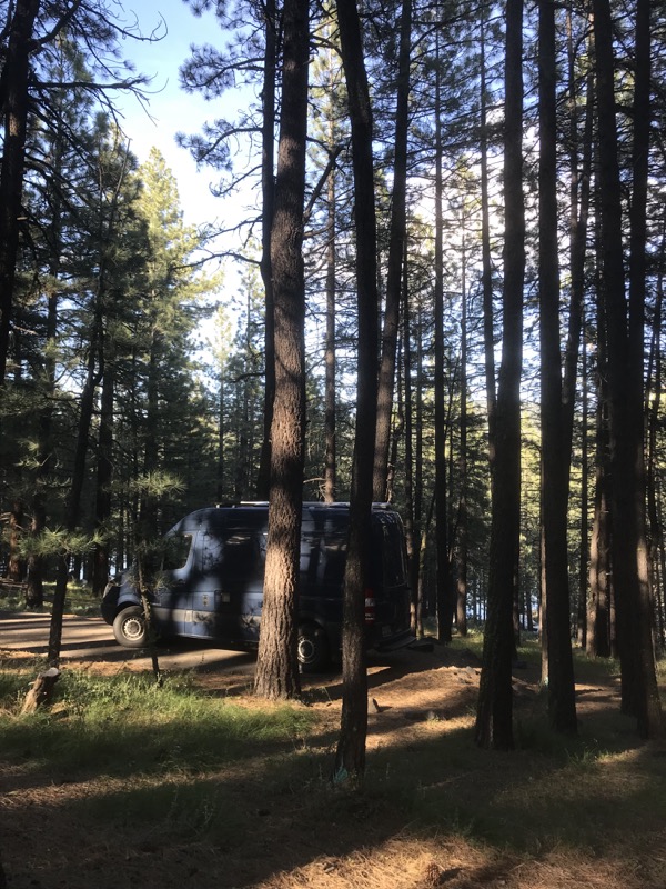A simple loop campground on an east-facing hillside above Frenchman's Lake. I like the inside of the upper loop with my living room facing the lake. It's quiet and pretty and the sun is on the other side of the van.