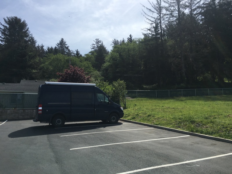 Not crowded this time. I got the edge spot in the parking row so my van door faces onto the grass. As much privacy as you're gonna get here. Only drawback is that there is no good angle to avoid the strong security lights.