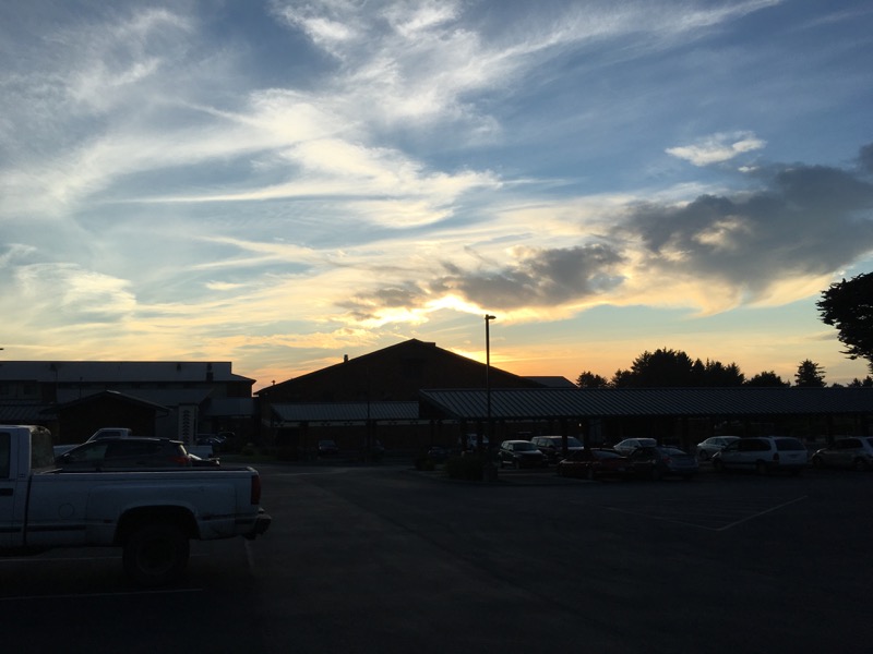 It's pretty busy here tonight, all the good spots on the edge of the parking area are taken, and there are even campers hanging out at the picnic tables. I park over in the regular lot and nobody bothers me.