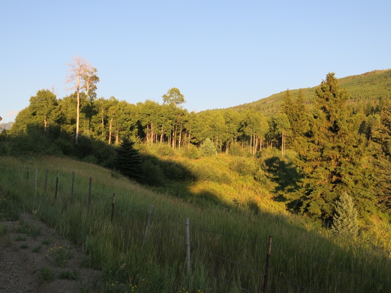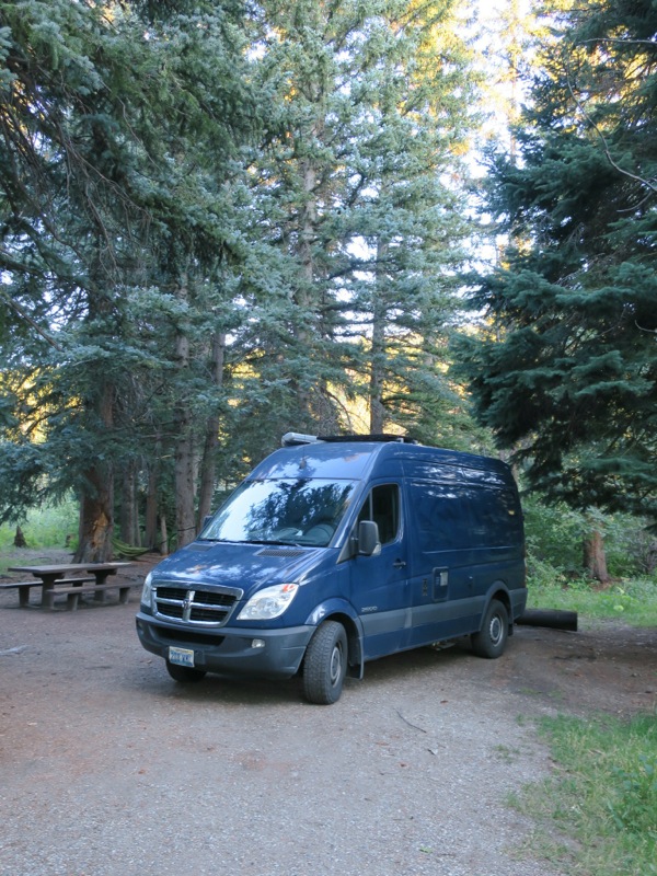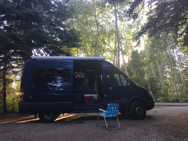 Elevation: 8,200' A nice place to stop early on Saturday afternoon. Most of the sites are in the pines and have good shade. The ones on the edges are in the aspens, so not as shady.