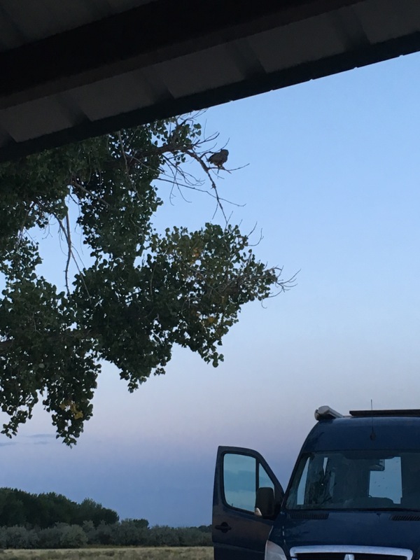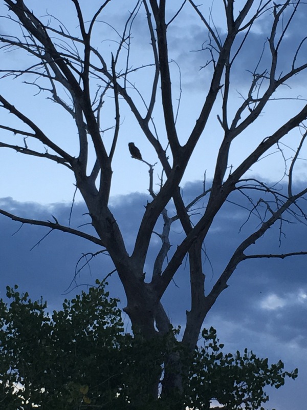 The actual campground is a few hundred yards up the road before the boat launch. Once the sun got low it was really very pleasant there. Hawks and owls hanging out in the tree at my campsite!