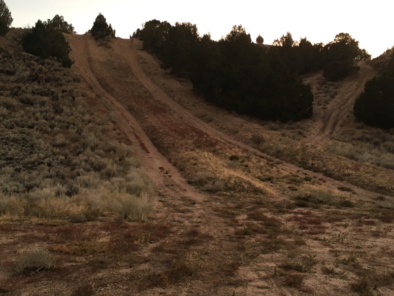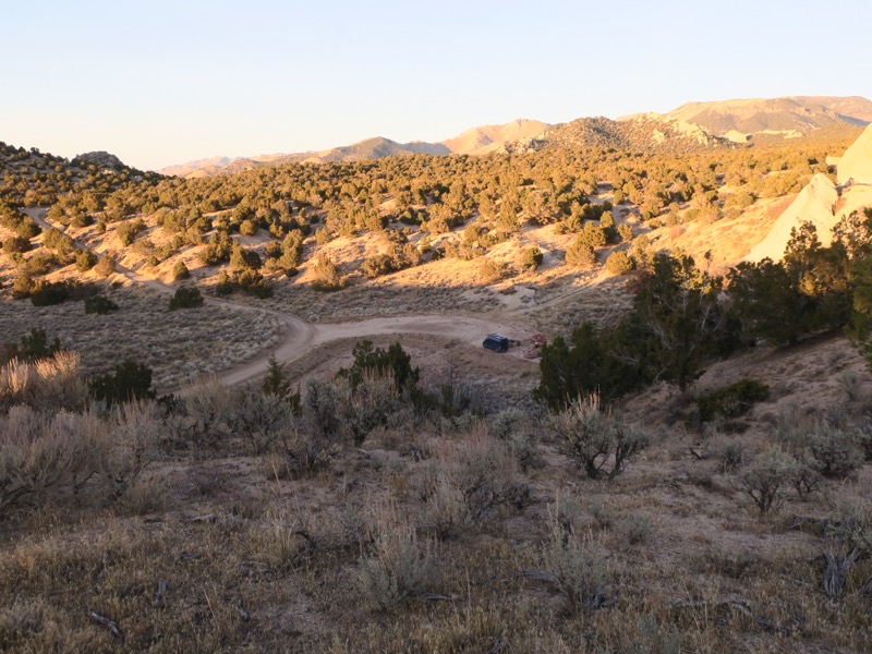 Ten miles of washboard-y gravel road off of Utah 121. Not worth it as it turns out. A very full open-top trash barrel in the middle of the camping area and not even a porta-potty.