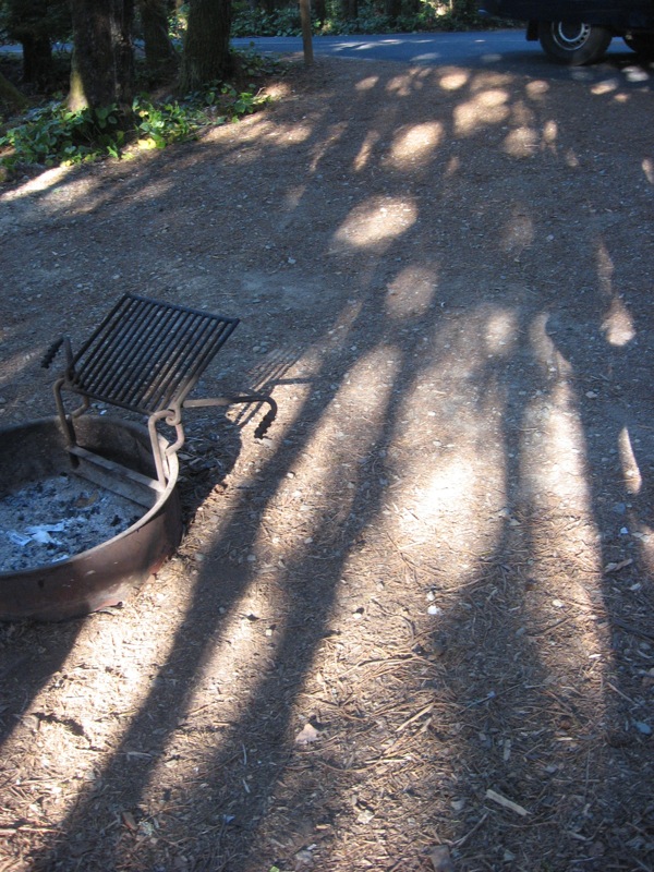 Quite crowded on a Sunday night in September. Still pretty awesome though. Site 2 is right across from the camp hosts, at the busiest place in this busy campground, but it's level and reasonably private and I'm glad to be here.