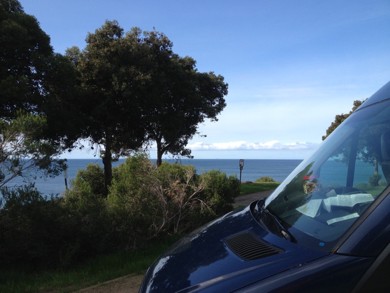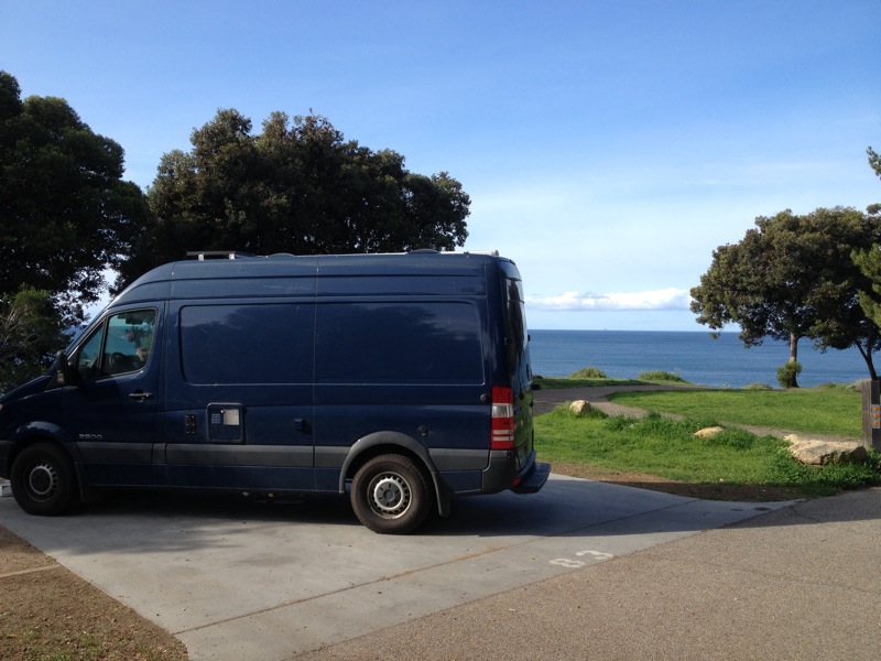 Campsites are on the bluffs above the beach, stairs were closed for repairs. Nice bathrooms, not crowded tonight).