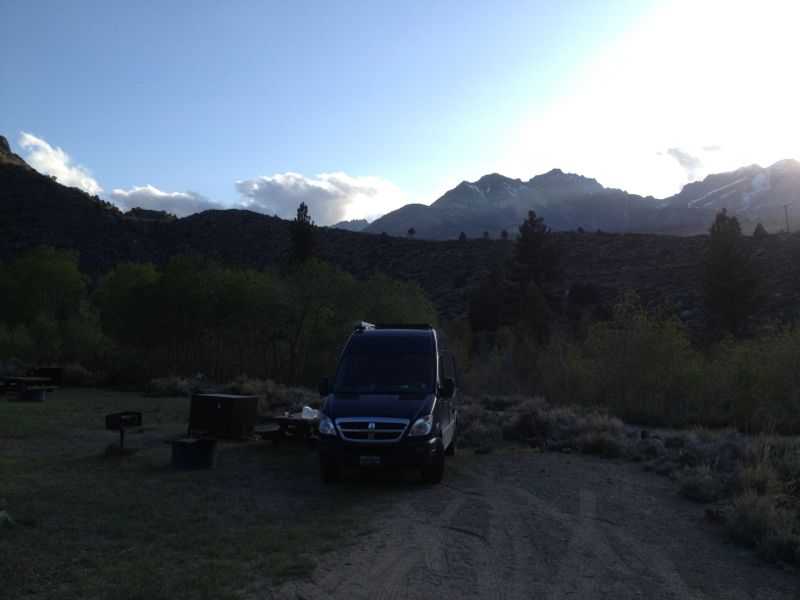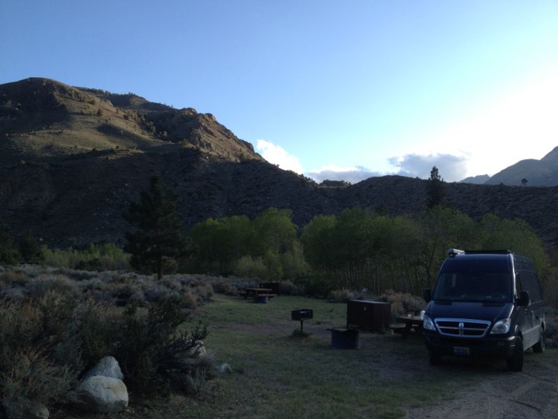 It's open and very pretty, with the annoying corporate management that most (all?) of the Inyo Forest campgrounds have.
