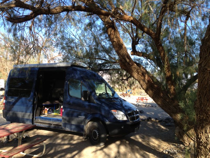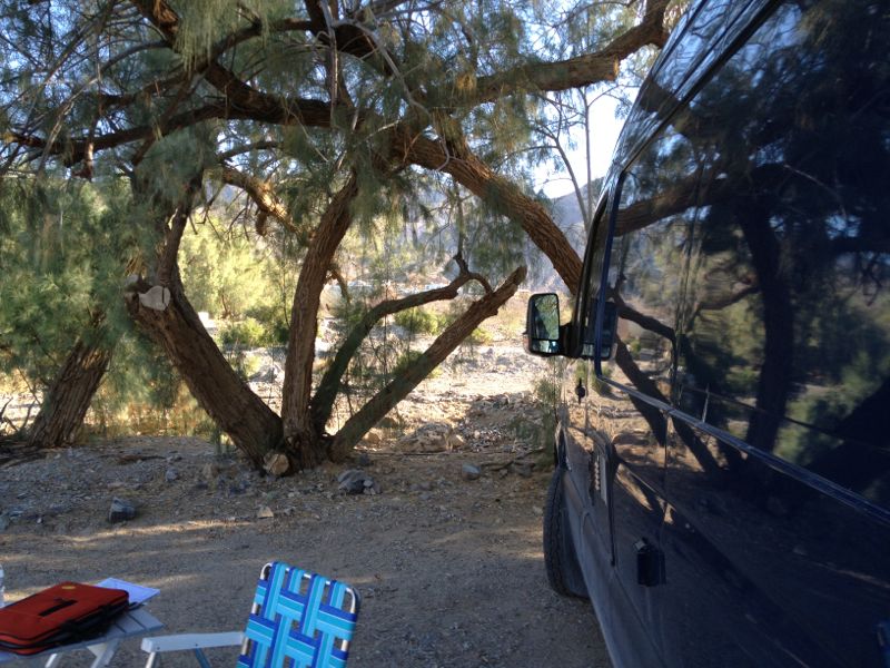 only thing going between Lone Pine and Death Valley. It looked a lot more alluring when driving past than it does now that I'm plunked down here. Maybe when I get a beer and hang out on the veranda I'll like it better. It does have showers!