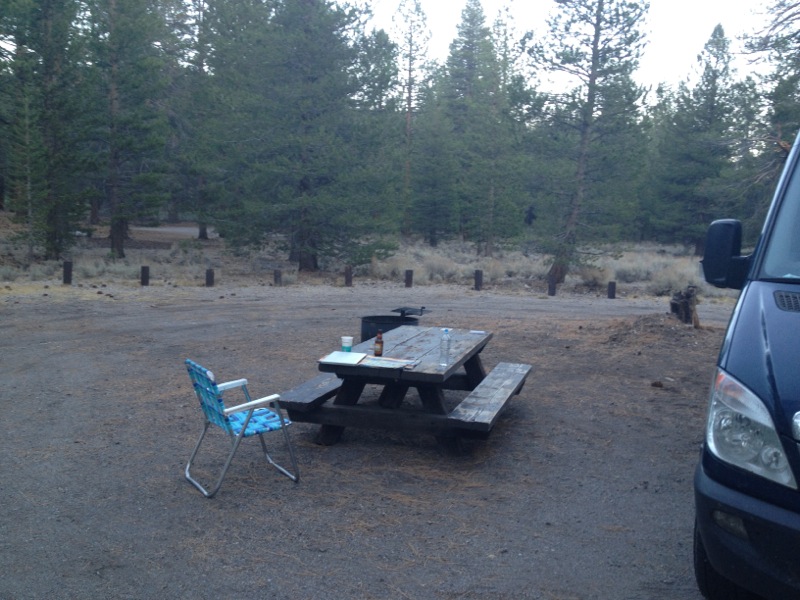The turnoff on 395 is unmarked, but I was looking for it. After checking it out a bit, I went back to the first empty site I drove past when I entered, at the southeast corner of the campground.