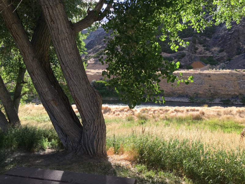 Nice shady cottonwoods to hang out under. US 20 is too close and tonight there are way too many bugs.