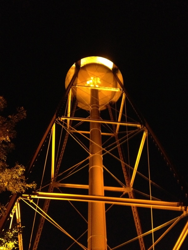 water tower by night