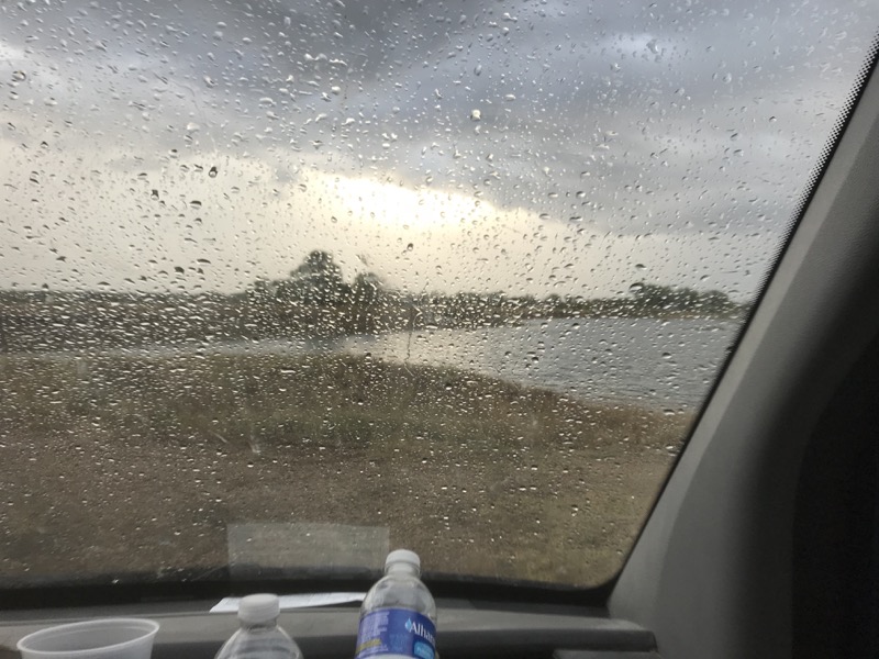 There is a turnout on the right immediately after the levee, facing on to a pond. That is where I have settled, and it really pretty nice except that the mosquitoes are so thick I fear to open a window or door.