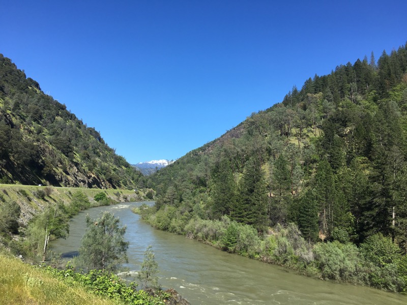 The road along the Sacramento is bumpy and beautiful. Kill time in Redding till the evening. Walk a little, hang out in the park under the railroad bridge by the river.