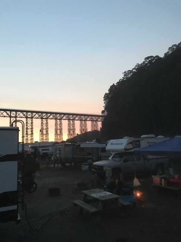 The campground itself is just another dusty slum, but the location is really cool. Next to the Albion River with nice tame little cove of the Pacific 300 yards away.