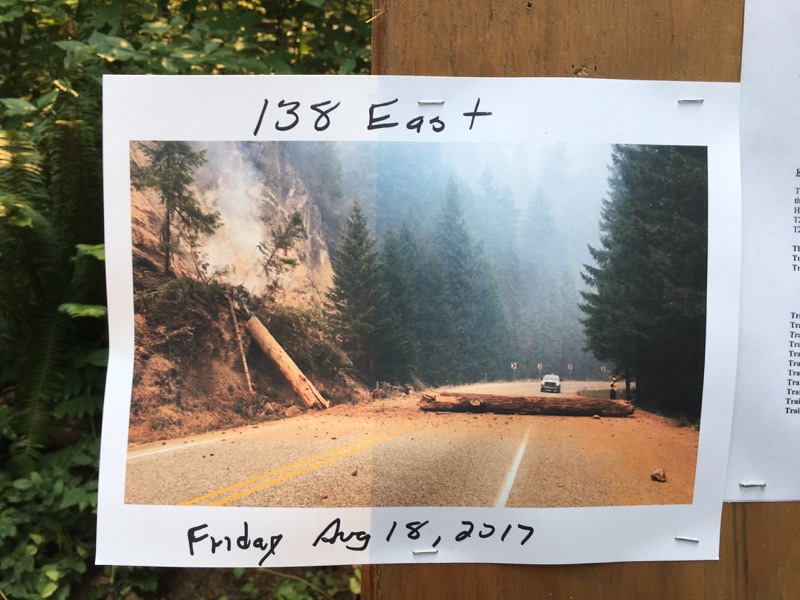 Breakfast in Reedsport, follow the Umpqua River inland End up on Susan Creek on a road closed by forest fires.
