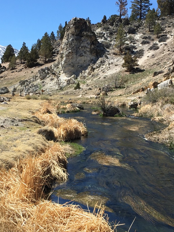 Hot Creek, lovely water weeds, on the "danger!" side of the fence