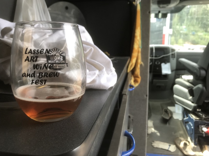 Down the south side of Mt Lassen. There is a wine and beer tasting at the Visitor Center. Unexpectedly spend the night at Jeffroe’s again.