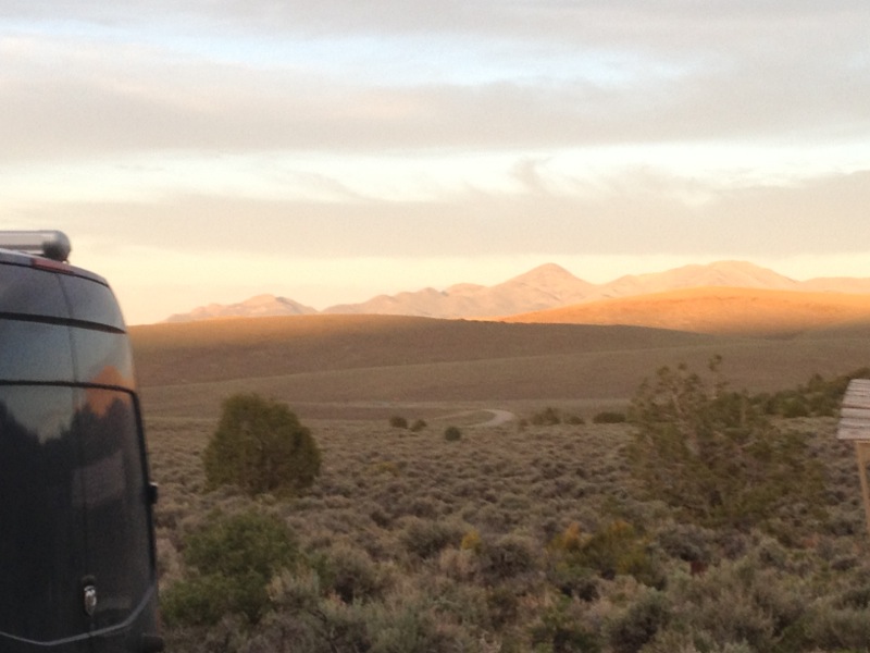 Nevada is wide. Another 2.5 hours of driving got me to the middle of the state, to good ole Hickison Petroglyphs, my friendly BLM wayside layover before that last leg home. The weather is so perfect – low 70’s and wonder of wonders, no wind! I’m sitting here in my chair watching the last rays of sunset over the hill to the west, and headlights from 20-30 miles away on US 50 approaching from the east.