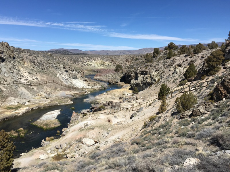 Checked in at 5:30 last night, so I have the run of the place till 5:30 tonight. I breakfasted at The Fork and Horn, formerly the (I think) Sierraville Cafe, and before that the Roundup Cafe. They cleaned the place up and went kind of gourmet. The food is very good now. Back to a lovely day of hanging out on the porch all afternoon. Left a little before 5 and drove 300 yards to the hot springs parking for a short soak in the very hot pool.