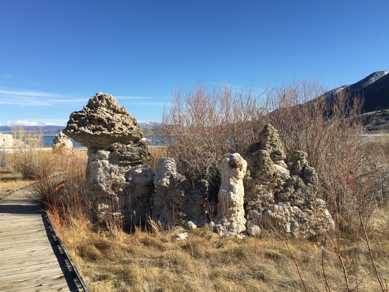 Then I drove the June Lake Loop because it is so pretty. Also to confirm that almost all of its campgrounds are gated and closed. Gull Lake is not, and that Aerie overflow lot past Silver Lake is not. Seems like they might bust me for staying in Gull, but I’ll bet no one would care if I overnighted at Aerie, so there’s my winter camping option! Drive through Lee Vining to Mono Lake County Park on the north side of the lake, one of my favorite stops. Walked down to the tufa, walked back. No big deal, but I felt better for it.Finish up the day, drive through Bridgeport, then the long right-angled trip through the flat valley to Buckeye Road and my favorite little spot in the trees above the hot springs.