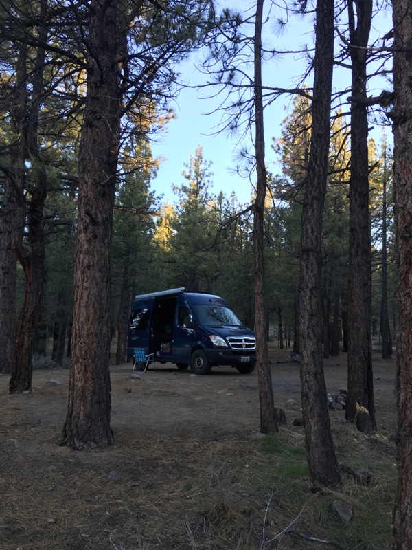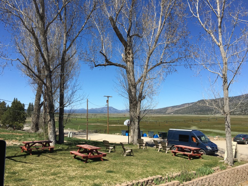 Camping is just the edge of the forest behind the lodge. Next to a very pretty cow pasture at the edge of the huge Sierra Valley.