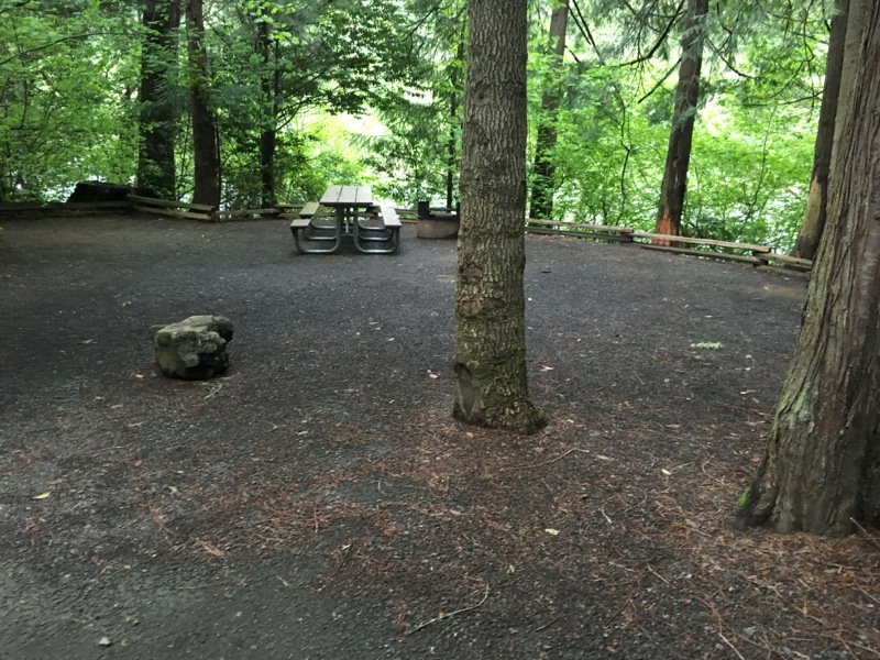 Summer rates, but also, all the loops are open, so I am in an actual tent site. Forbidding sign says "One night only." Works for me! Still pretty and green and grassy, and I-5 is still 200 yards away.