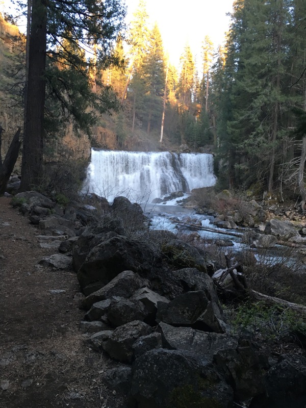 Another great hike, made it all the way to the Middle Falls viewing platform. Followed my favorite script by walking back on the road, I was able to not use the flashlight, and as a bonus, had great views of Mt Shasta in the waning light. Towards the end I wasn’t sure I was on the right road, so I got the bright idea to is “Find My iPhone” to find my laptop or iPad, allowing my to effectively home in on the van. Brilliant idea :), but it failed to find either … because they have no connectivity other than internet? Oh well, research topic.