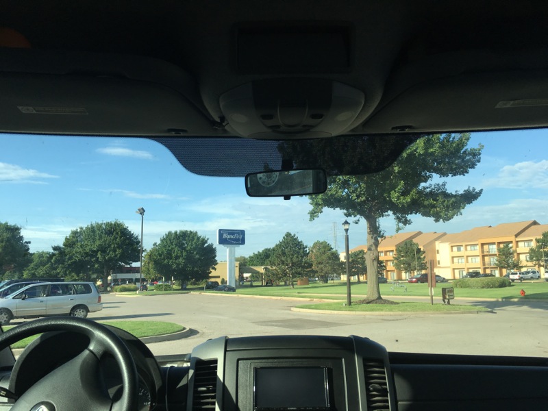Then back on I-40 through the heat of Oklahoma City to the Freightliner place to set up my van service. After a false start where I found my in the big rig service area I was gently directed across the street to where the amateurs in their pitiful little vehicles are serviced. They wrote me up for tomorrow, and boom! I’m loose on the big city with an afternoon and evening to kill. A very little bit of driving at 4pm rush hour driving convinced me that the smart play would be to get to a nice air conditioned library for a couple of hours and wait for the traffic to die down. Good plan!