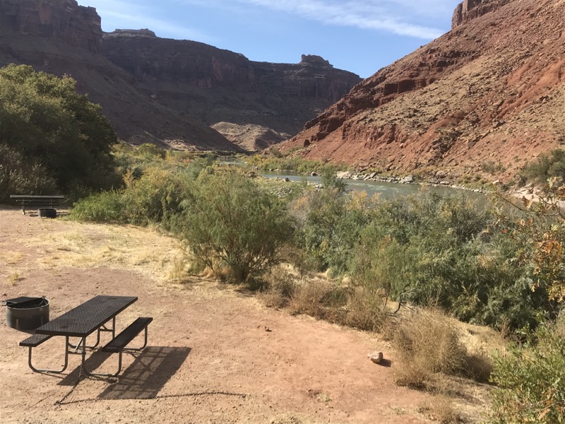 Site 2 appears to be the only one with a remotely level parking pad. It's also very pleasant. The giant butte across the river puts it in shade most of the afternoon, at least in October.