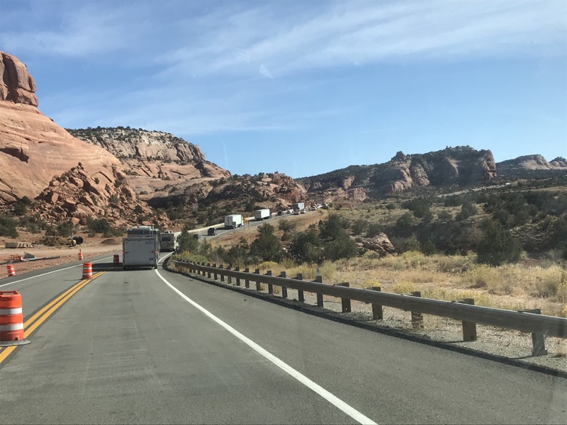 Got me some fried chicken in Monticello. An unfortunate choice as we will see later. I stayed in a motel here and spent the evening at the library 15 or so years ago and I’ve liked Monticello ever since. The opposite of how I feel about the next town, Blanding, which I have always found to be utterly unlovable in every way. It’s restaurants are terrible, it has a pinched, uncharitable feel to it. It is the last civilization for quite a while, so I did get diesel there, and had a little vignette at the gas station apropos of that feeling. I was listening to a Chris Hayes podcast when I pulled in and left it going with the door open as I filled up. There was a dude filling up his giant white pickup truck on the other side of the island. He could clearly hear whatever takedown of Trump that Hayes was engaged in at the moment and he was not amused. I even got a pretty harsh stinkeye as I was pulling out … Same to you buddy.