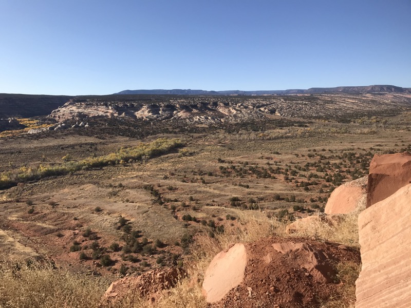 That spot has a panoramic view of Comb Wash, and even though it was tonight’s goal it didn’t look like a fun place to stay tonight. The fall color is long gone, cottonwoods are bare, and from up here the few campers looked like homeless people. The road sign said 45 miles to Hite, where I knew I could find a quite nice place to stay on the shores of Lake Powell. So I keep going, with the notion of looking for a likely dispersed camping spot, and if I don’t find one, I will get to Hite soon enough.