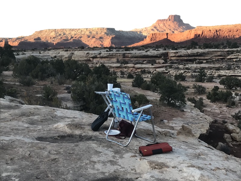 I drove past Fry Canyon (never got to stay at that place before it closed), and was making my way leisurely through beautiful White Canyon when I spotted a likely turnout. I took it, and a few hundred yards in was a nice, level parking spot 40′ from the edge of White Canyon. What an amazingly perfect spot! I’m within sight of the road, but there’s not traffic in the evening – not much traffic ever, I think. My third really nice dispersed camping spot so far. Driving on in the morning I find that it is couple of miles south of the Jacob’s Chair viewpoint sign, just fyi…