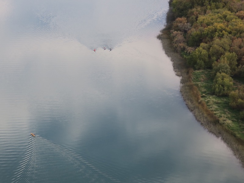 Kayakers on the Snake far below the Twin Falls Bridge.