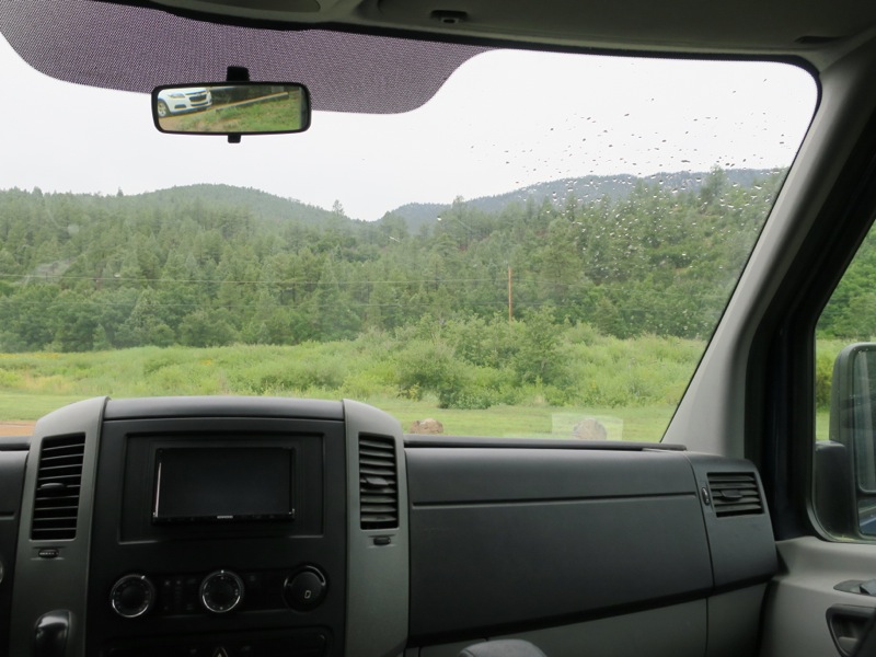 Saturdays are such a trial to the hardened traveller. Every site is taken, and it has been raining for days, so the overflow lot is a soggy mess. The nice lady said I could park on the reasonably level pad next to the bathroom. The things I do for a shower.