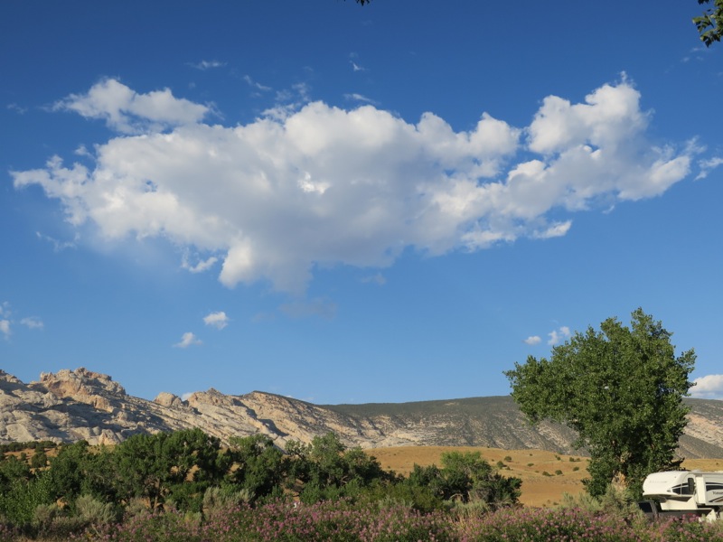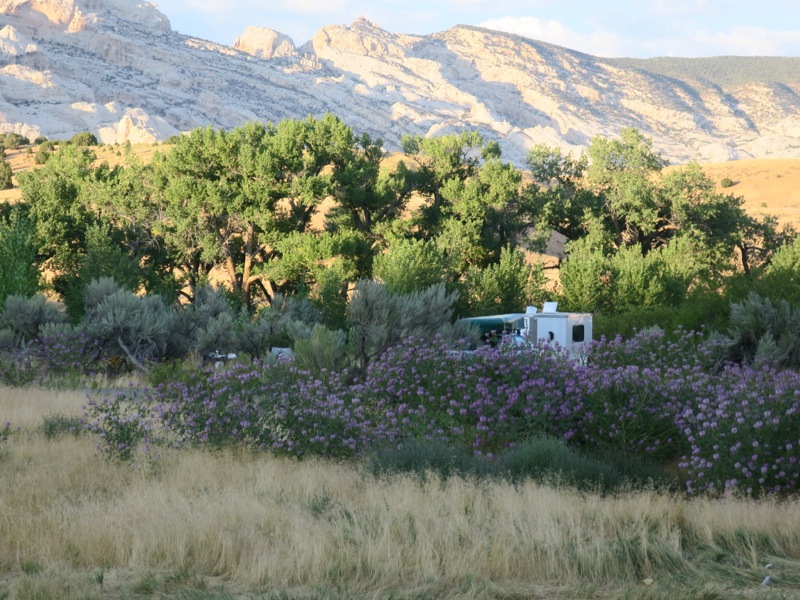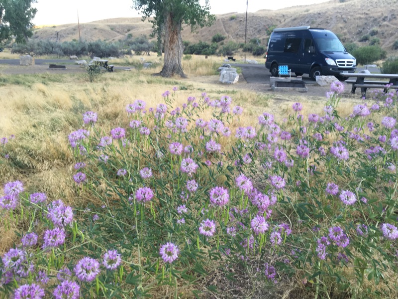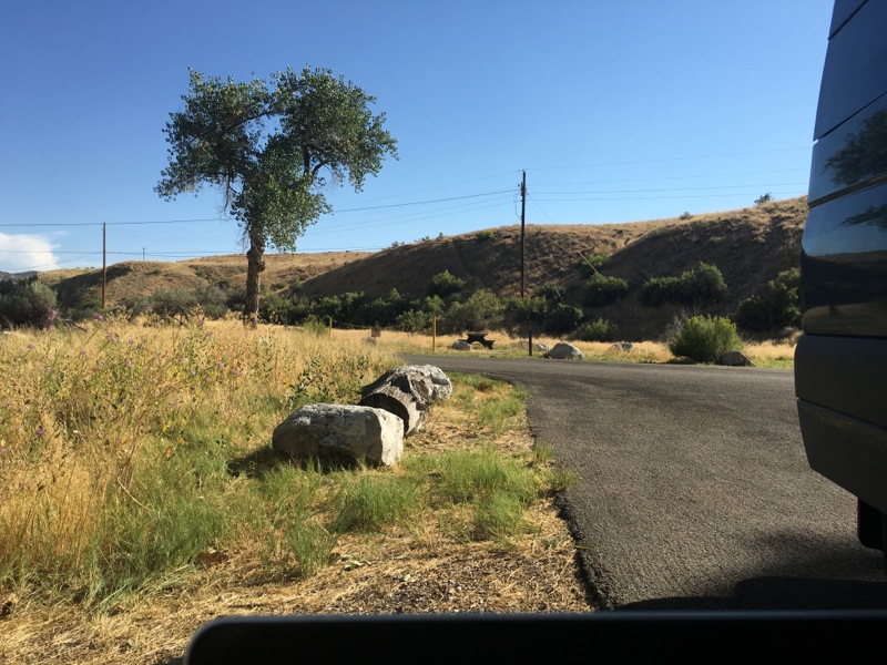 Very hot here, tried to choose a site for morning shade. There is a nice trail up the river. Sunset against the mountains across the river is beautiful.
