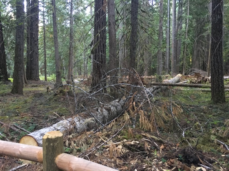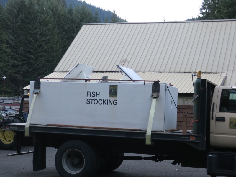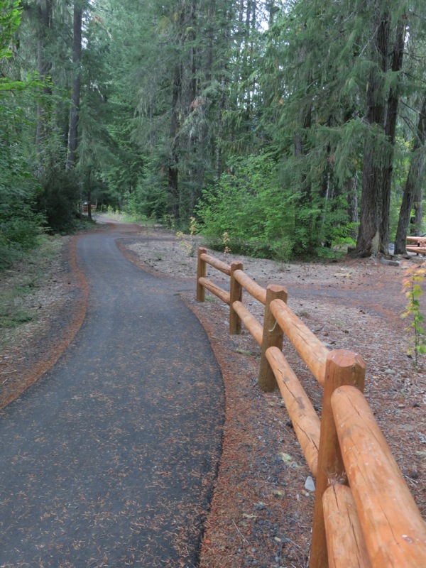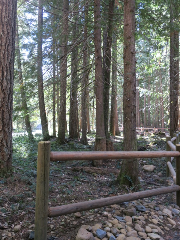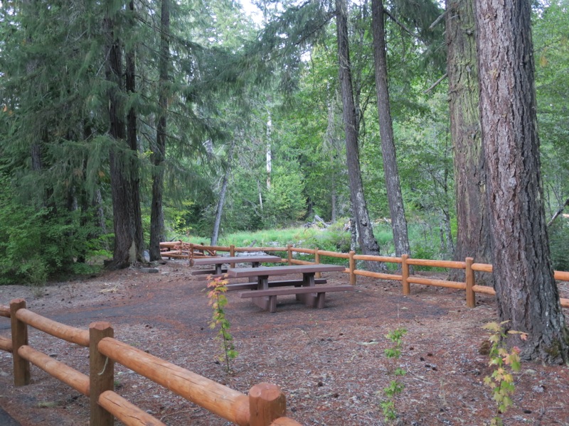 Glad I stopped here, really nice campground at a cool place, behind a State of Oregon trout hatchery. The campground is pretty deluxe, there are heavy wooden fences lining the roadway and each campsite, I guess to clearly delimit where people should walk and where they shouldn't. So the forest ares are pretty pristine.