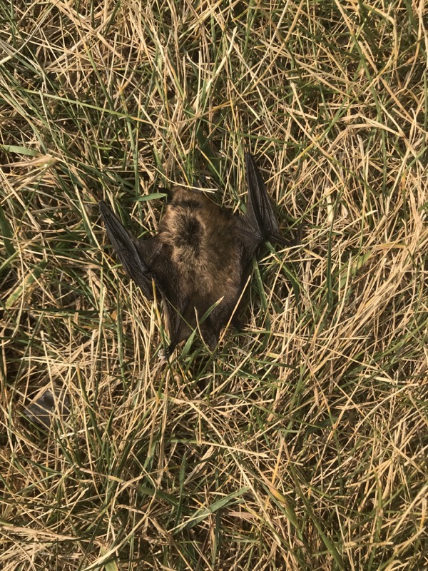 Eek! That thing in the grass between me and the picnic table is a dead bat.