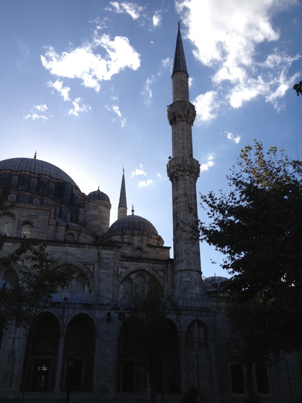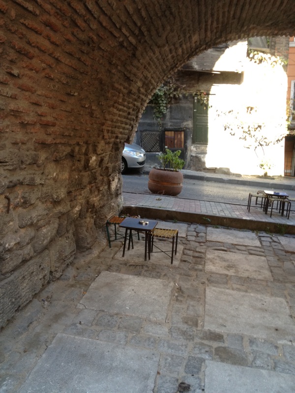 Back to Atatürk Blvd where some kind of monument is under construction. Cross the Boulevard, then follow the aqueduct as best I can as it heads off towards Sultanahmet – where, back in the good old days (300-500AD) it refreshed the Basilica Cistern. I ended up in a couple of really obscure back-alley dead end situations. It was mellow and everybody was friendly, but it was kind of an adventure. I went through a gate in the wall, down some narrow streets whose only exit was into a mosque courtyard (Sehzade Mosque). It was very pretty and restful here, but I could see no exit in my direction, and I felt uncomfortable here. Totally my thing, nobody was giving me funny looks or anything, but I worred that I was doing something wrong, so I this retraced my steps all the way back through the winding alleys to the avenue. Also, there was no place to sit :)
