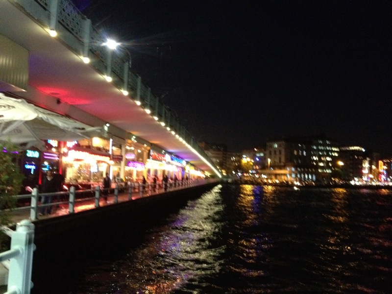 My last night!! I take the beautiful walk home one more time. Now that I really, really am leaving tomorrow, I make myself slow down and savor the sights and sounds that I will be leaving behind. Yesterday, all the crowds and noise were a pain in the ass, but tonight they are exotic – go figure. Walk down the busy street to Eminönü, across the Galata Bridge for the last time to my favorite little fish sando stand. Yum again – try to talk basketball with the lanky kid that works there. Cross under the bridge to the south side to a colorful little section I just noticed from across the water. I decide to have another fish sando! Quite glad I did, a much more upscale vendor, nicer fixin’s, still 5TL. Nice, final walk along the Bosporus to Kabatas for a final ride up the Funicular. Even on my final night I’m not tempted to go sample the nightlife – go figure again!